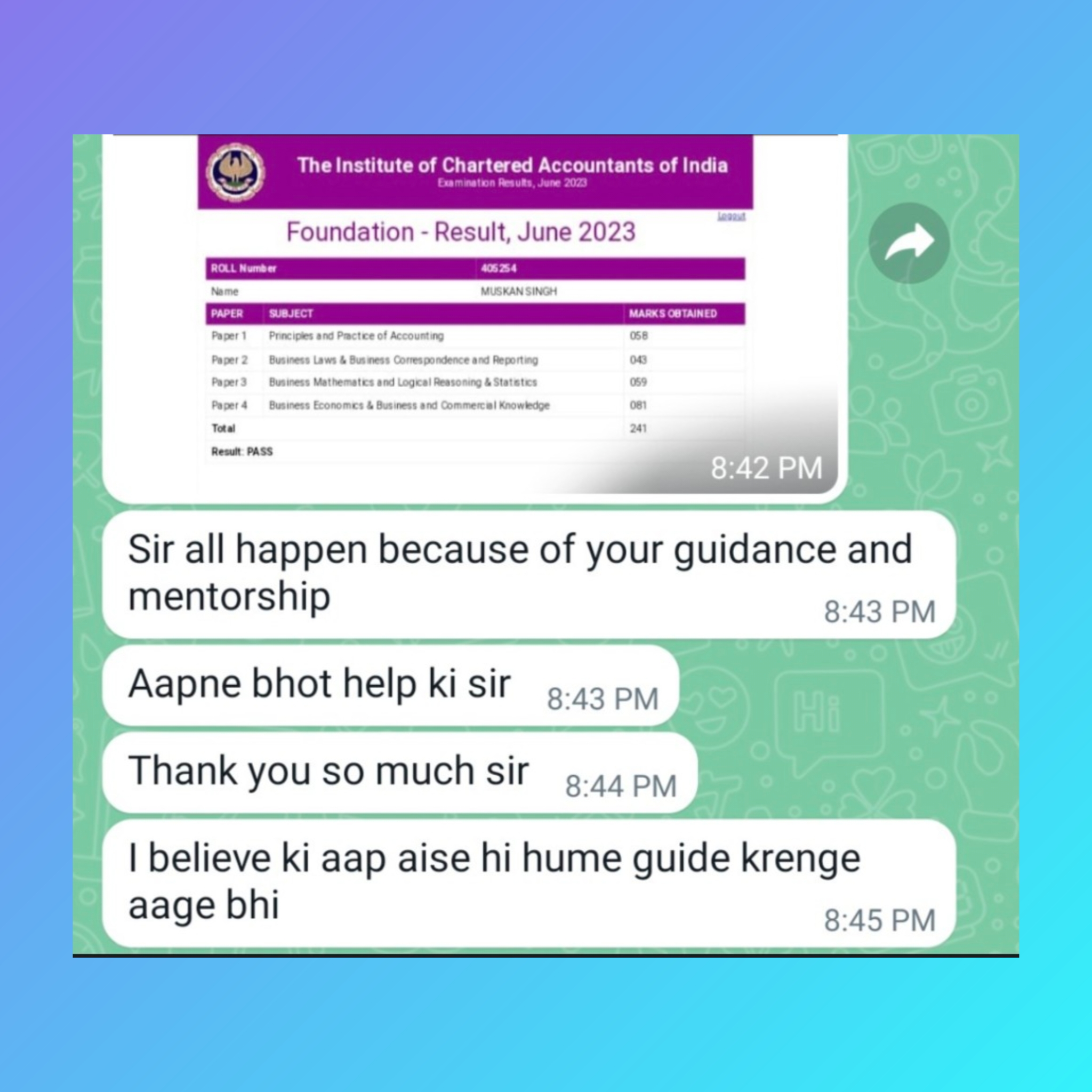 ✅ Every Saturday, Mentorship call by Chartered Accountants to discuss strategy and paper preparation.