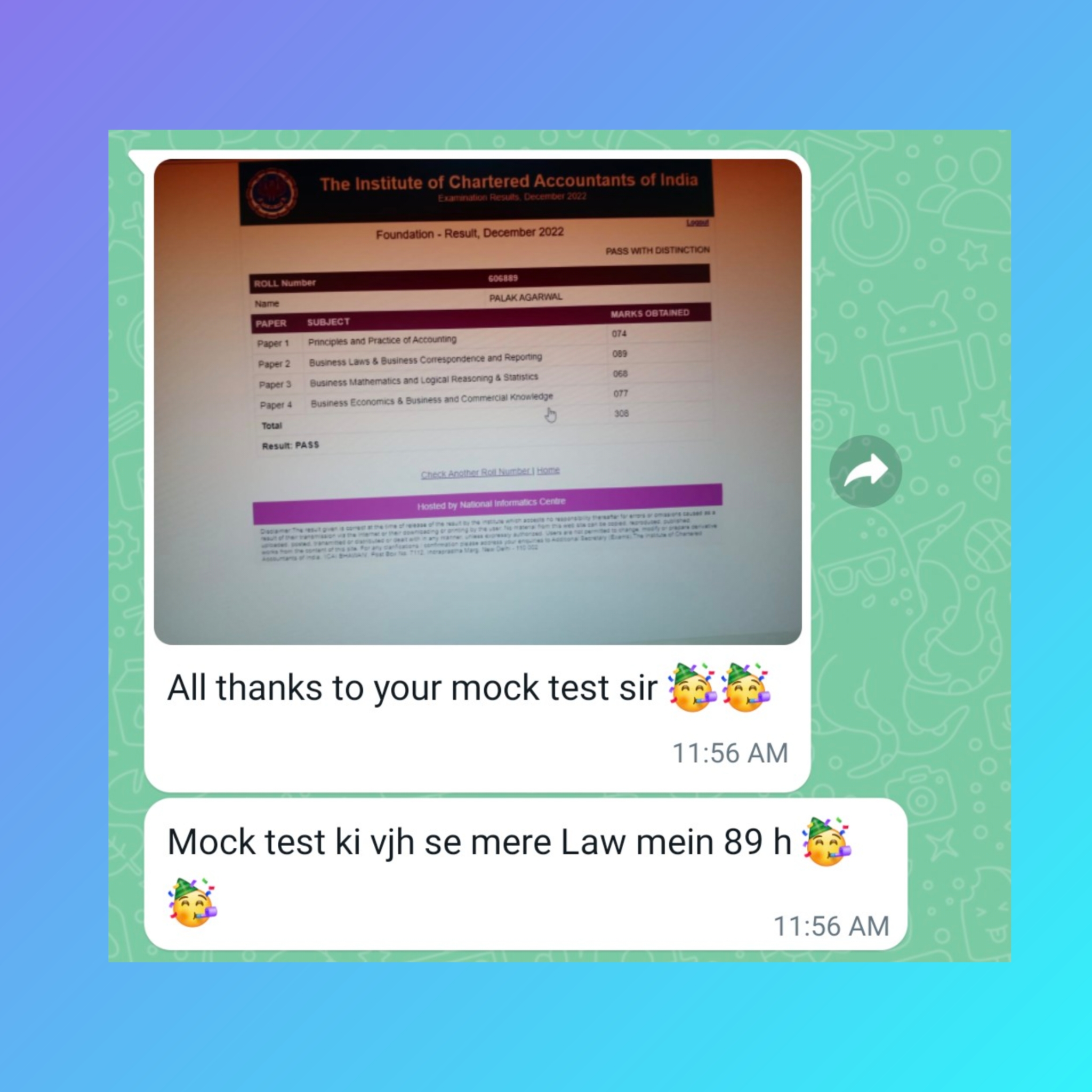✅ All Chapter-Wise tests are self evaluated and full syllabus tests evaluated by Charted Accountant.